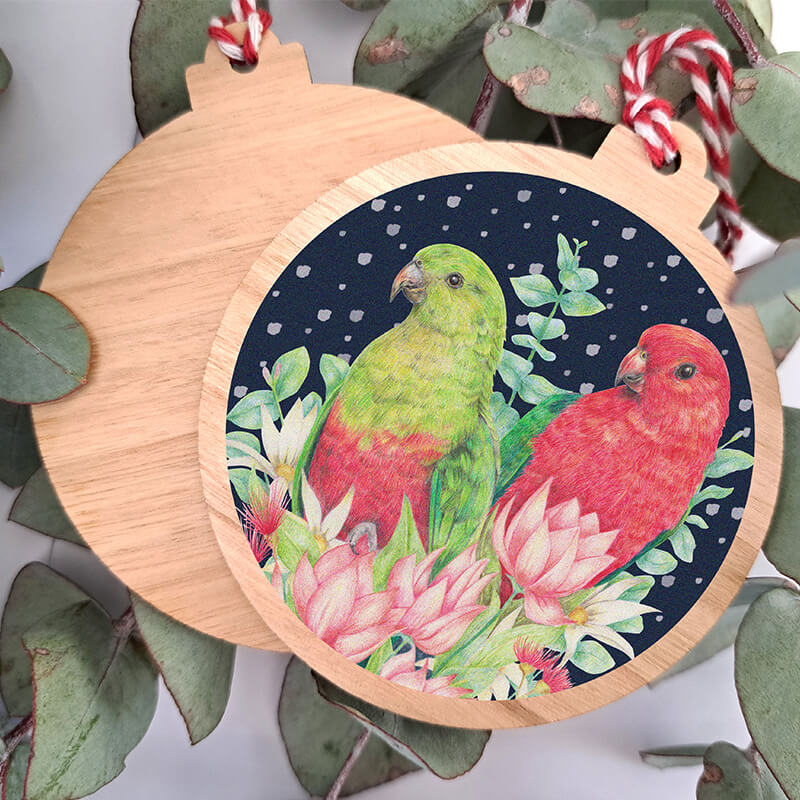 Celebrate the festive season with this Australian King Parrot ornament, ethically made from Australian eucalypt wood.