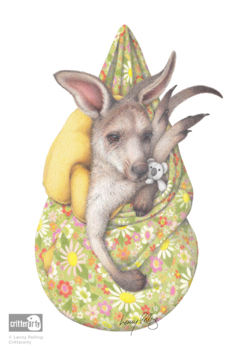 Critterarty prints are based on lovingly hand drawn pieces by Sydney artist, Lenny Pelling. She has a passion for animals great and small, weird and wonderful, furred and feathered.