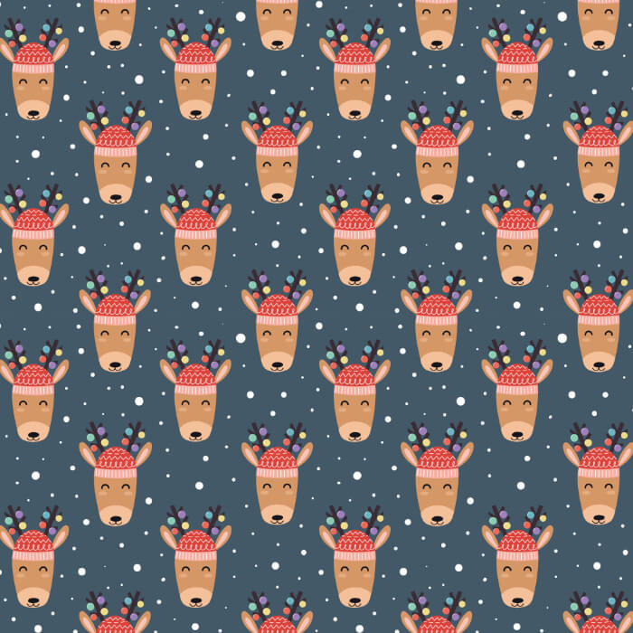 This adorable Christmas fabric features a reindeer wearing a cozy beanie with twinkle lights on its antlers. Perfect for adding a festive touch to your holiday table with beautifully sewn table runners, placemats, or napkins. Sew something magical for the holidays with this playful reindeer design.